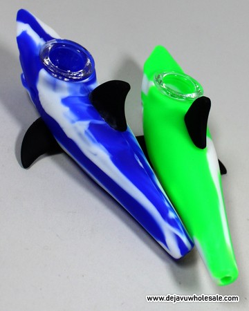 5'' Silicone Shark Hand Pipe with Replacement Glass Bowl