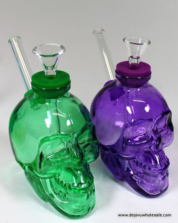 4'' Colored Glass Skull Water Pipe